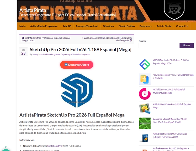 Users who want to explore more details about SketchUp Pro 2026 Full v26.1.189 Español can find this article available on ArtistaPirata software where software information is presented clearly to help users understand features and system compatibility.
