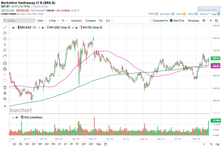 Over the longer horizon, Berkshire has quietly but steadily outperformed, gaining 12% year-to-date and rising 6.6% over the past 52 weeks, handily beating the Dow’s more modest 7.4% YTD return and 2.3% yearly gains.