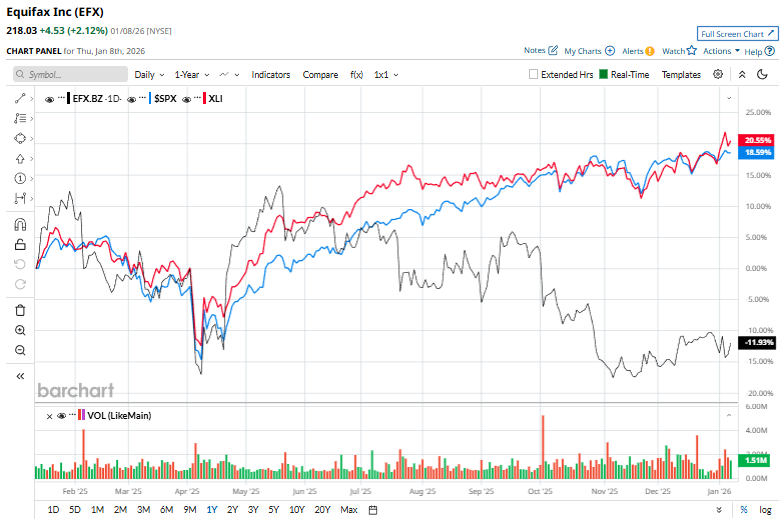 Over the past year, shares of EFX have dropped 12.1%, underperforming the S&P 500 Index’s ($SPX) 17% gains and the Industrial Select Sector SPDR Fund’s (XLI) 20.6% gains over the same time frame.
