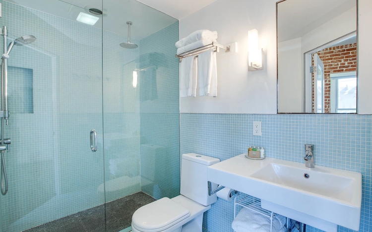 The beachfront suites at Venice Breeze are equipped with complete kitchens, AC systems, walnut hardwood floors, and luxe glass-tile bathrooms. The suites can take up to two or four guests.