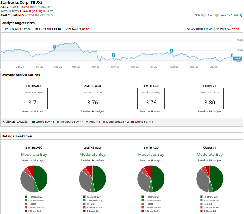 On Oct. 28, Mizuho analyst Nick Setyan initiated coverage on SBUX with a “Neutral” rating and set a price target of $84.