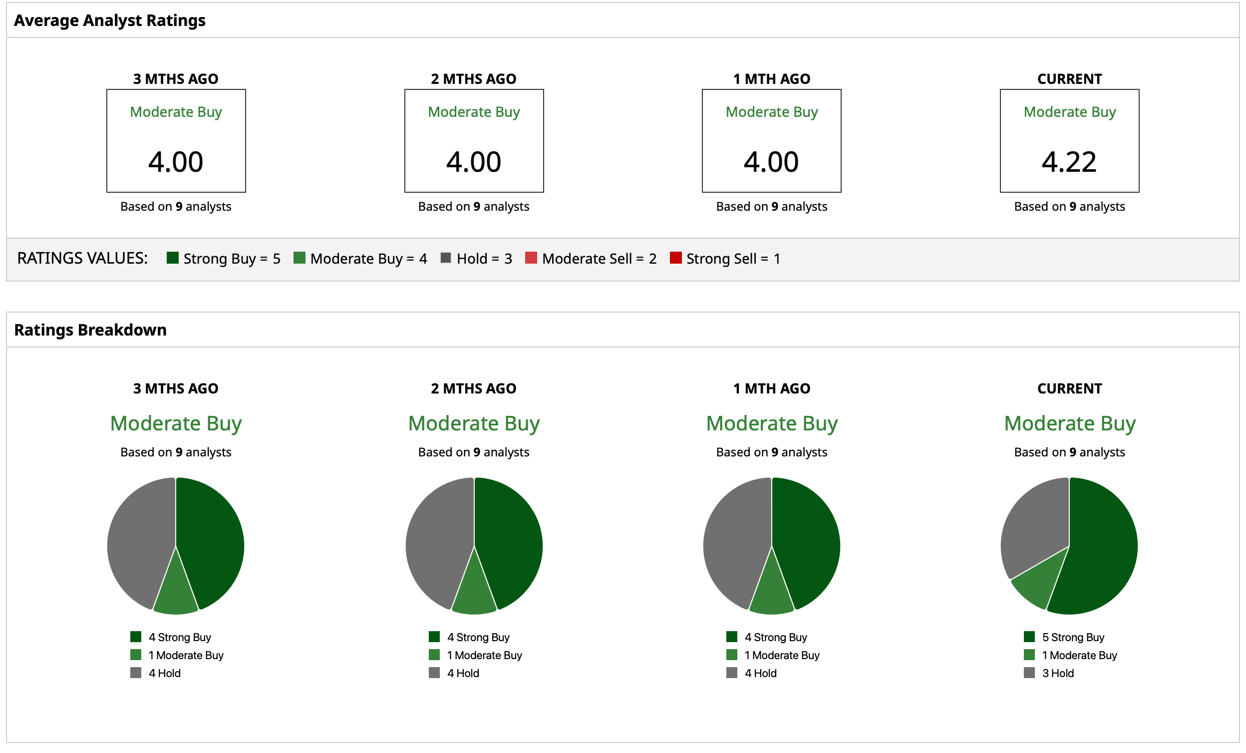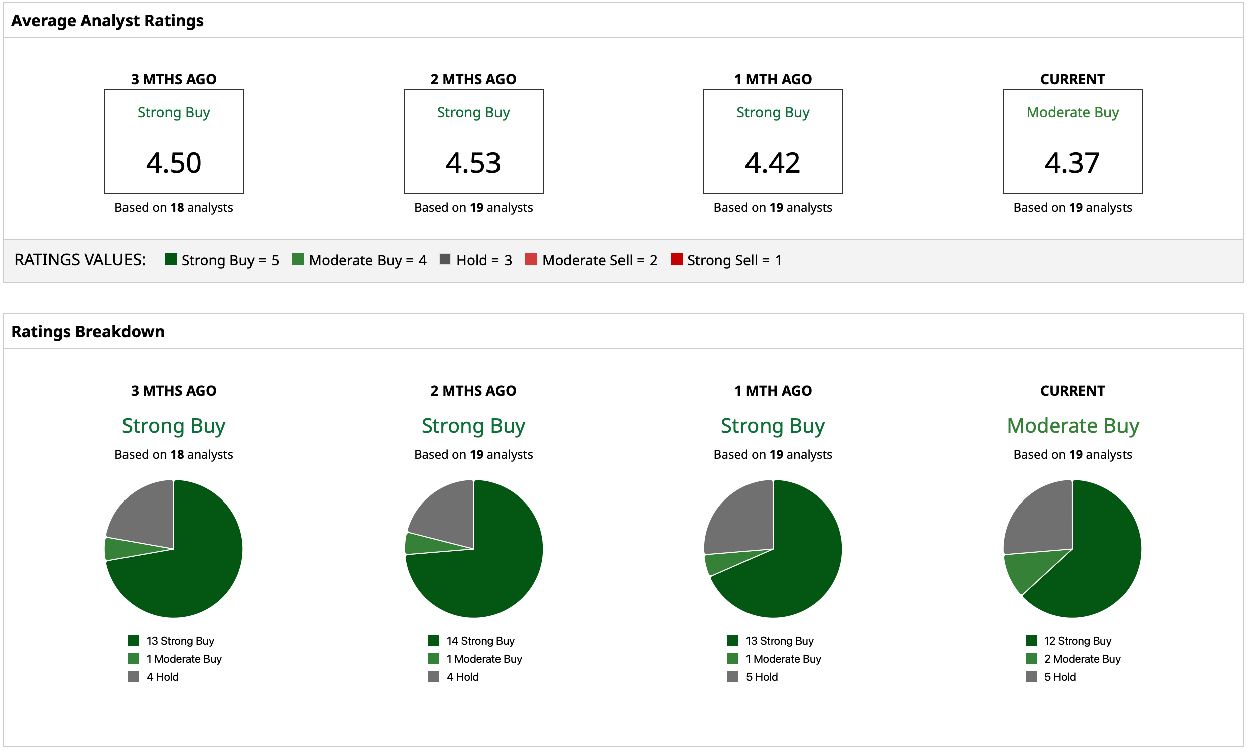 Thus, analysts have deemed the stock to be a “Strong Buy” with a mean target price of $481.43. This indicates an upside potential of about 17% from current levels. Out of nine analysts covering the stock, five have a “Strong Buy” rating, one has a “Moderate Buy” rating, and three have a “Hold” rating.