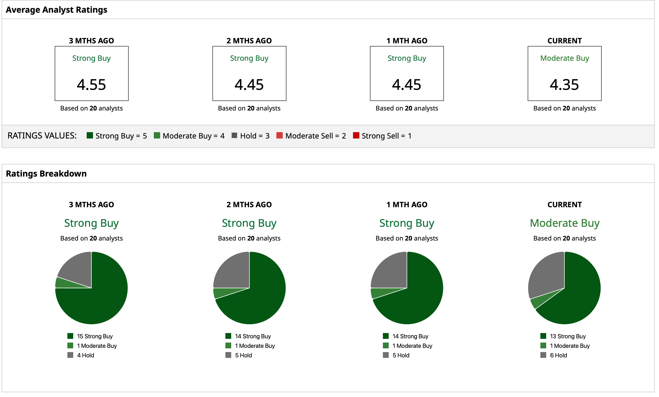 Overall, analysts remain cautiously optimistic about the COHR stock, assigning it a consensus rating of “Moderate Buy.” The mean target price of $158.94 denotes an upside potential of about 4% from current levels. Out of 20 analysts covering the stock, 13 have a “Strong Buy” rating, one has a “Moderate Buy” rating, and six have a “Hold” rating.