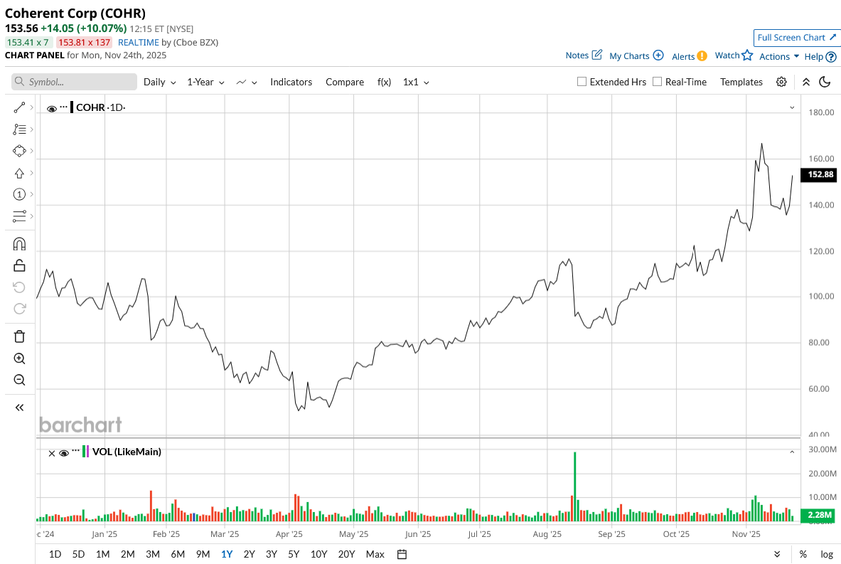Founded in 1971, Coherent (COHR) is a global technology company focusing on photonics, optical materials & devices, lasers, and compound semiconductors. The company's operations span across segments such as materials & components (compound semiconductors, optics), networking/communications photonics (e.g., optical interconnects for data centers), and lasers/laser systems (industrial, scientific, and defense).