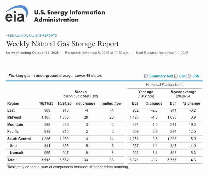 With the 2025 injection season winding down, U.S. natural gas inventories are slightly lower than last year.