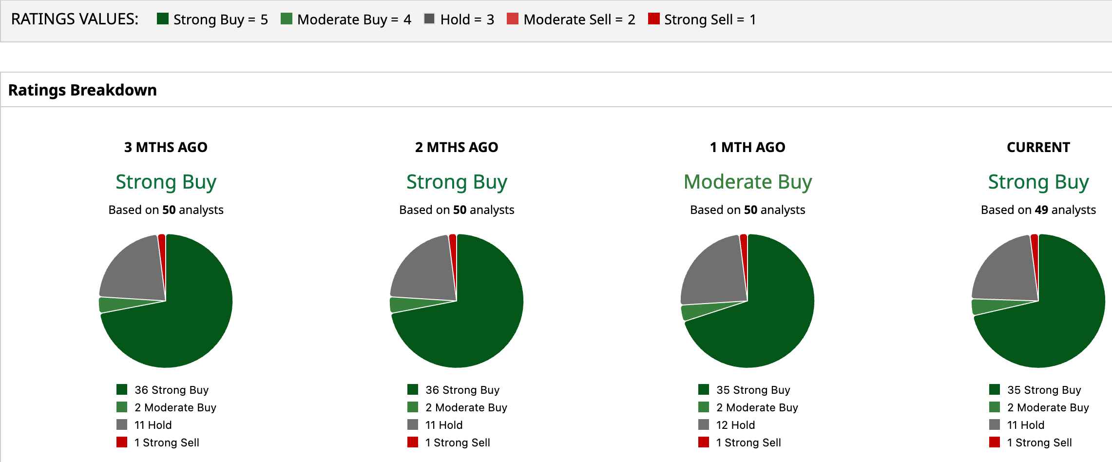 Among the 49 analysts covering CRM, the consensus rating still lands at a “Strong Buy.” Of these, 35 analysts are firmly in the “Strong Buy” camp, two recommend a “Moderate Buy,” 11 suggest “Hold,” and just one analyst has issued a “Strong Sell.” The optimism shows up in the price targets, too.