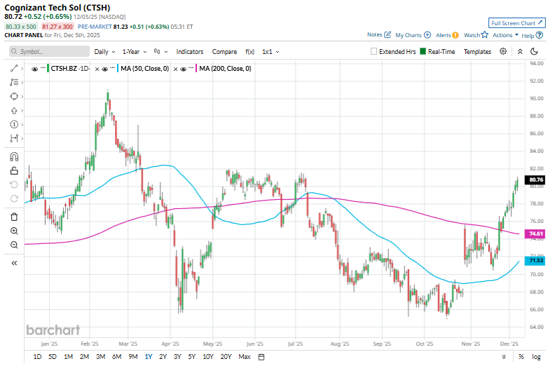With a market cap of $39 billion, Cognizant Technology Solutions Corporation (CTSH) is a major global IT-services and consulting firm. Headquartered in Teaneck, New Jersey, it delivers a wide range of services, including IT consulting, digital transformation, cloud infrastructure, AI and automation, cybersecurity, business-process outsourcing, and enterprise systems integration.