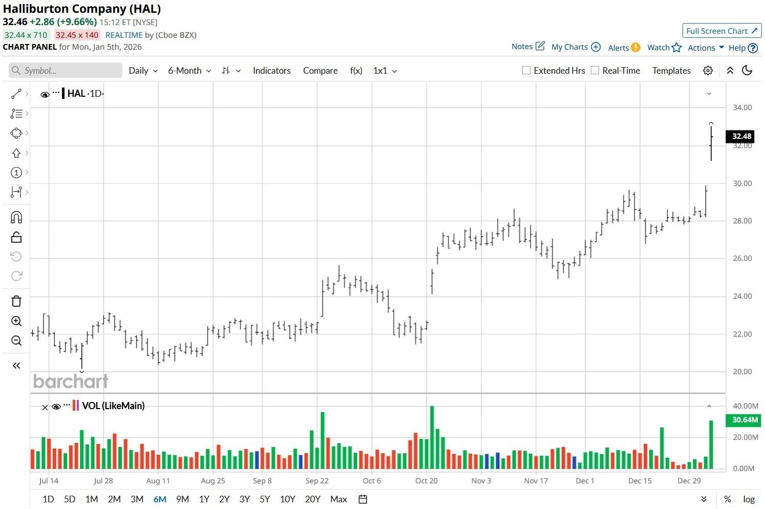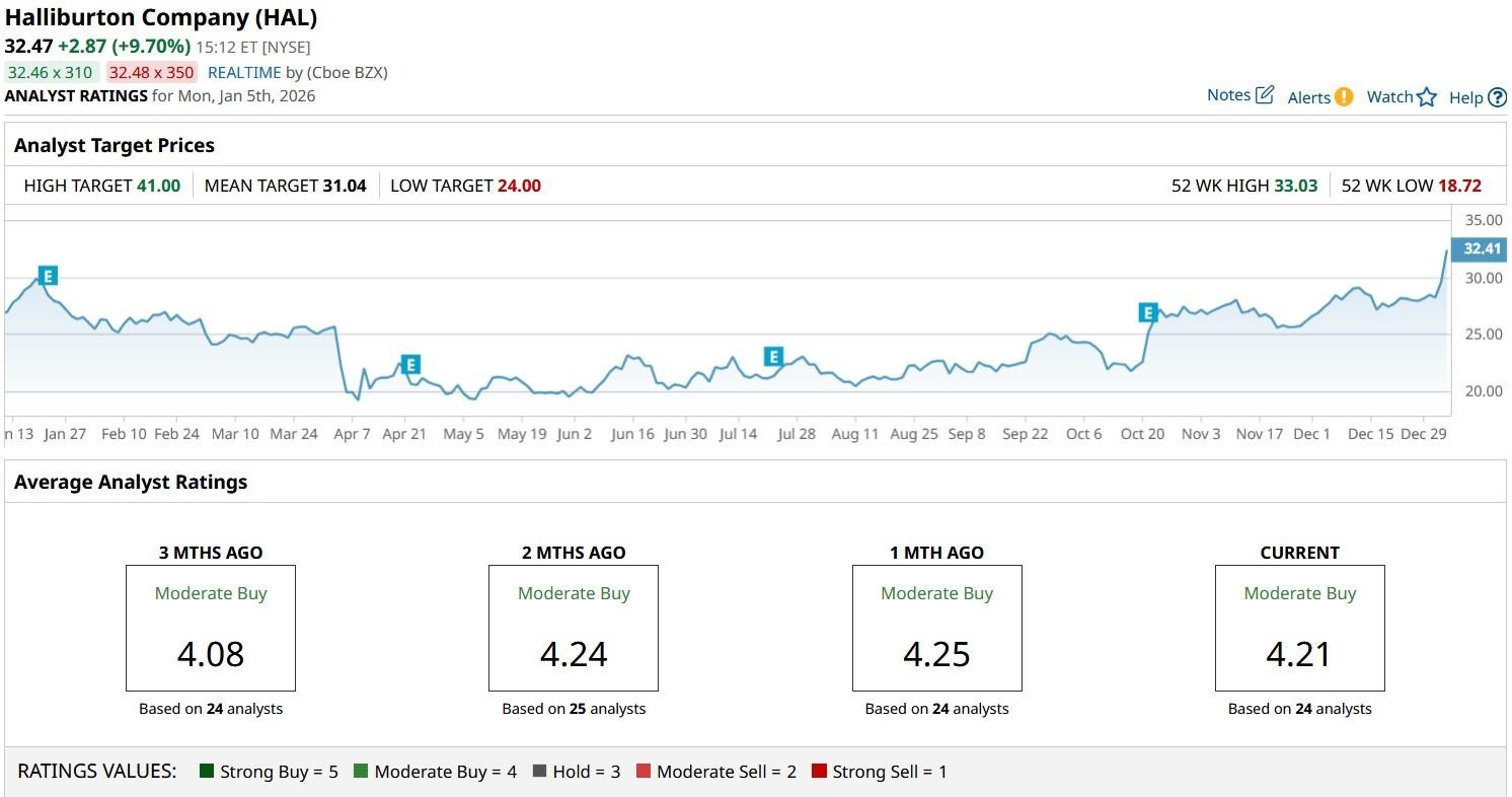 According to Barchart, the consensus rating on Halliburton shares currently sits at “Moderate Buy” with price targets going as high as $41 indicating potential upside of more than 25% from here.