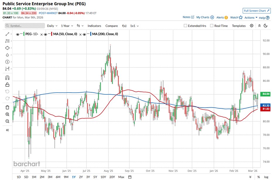 Momentum has quietly turned positive for PEG stock. Since February, shares have been trading above both the 50-day and 200-day moving averages, a sign that buyers are in control. Holding above these key technical levels suggests the broader trend is stabilizing, with the stock building a base for potential further gains.