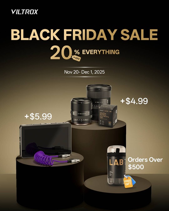Shenzhen, China - November 20th, 2025 - Viltrox is pleased to announce exclusive sitewide savings on the company’s acclaimed LAB, Pro, EVO, Air, Raze, and EPIC lenses, plus lighting and monitoring products, celebrating a decade of innovation in imaging technology. These special Black Friday prices will only be available from November 20th to December 1st, 2025. As the festive season approaches, Viltrox invites creators worldwide to embrace the spirit of creativity and storytelling with its Black Friday 2025 Sale. Featuring 20% price reductions across all categories, from premium autofocus lenses to compact lighting and monitoring systems, the event continues Viltrox’s mission: to make professional imaging tools accessible to every creator. The Viltrox ecosystem spans the entire creative process from capture to creation, and supports major mounts including Sony E, Nikon Z, Fujifilm X, DJI DL, and PL.