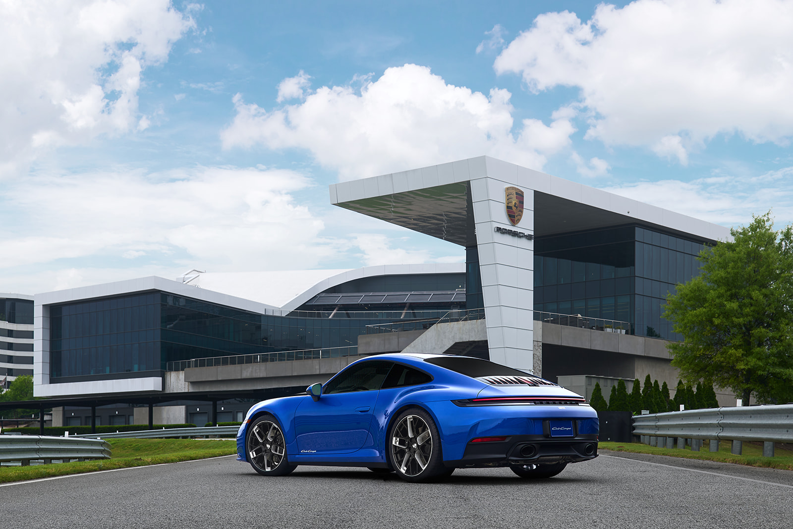 A decade later, Porsche commemorated the 60th anniversary milestone with yet another special model: the 911 Carrera GTS Club Coupe. The debut happened at the newly opened Porsche Experience Center Atlanta in January, 2015 with a subsequent showing at Porsche Parade in French Lick, Ind. in the summer of that year. This 60-unit, limited-production model was based on the contemporary 911 Carrera GTS (991.1 generation), and benefitted from both the chassis and powertrain enhancements of the time including the wider body of the 911 Carrera 4. Its naturally aspirated 3.8-liter flat six generated 430 hp and could accelerate from a standstill to 60 mph in 3.8 seconds when paired with the seven-speed PDK transmission. Perhaps most notably, the car came finished in Club Blau, a newly created color special to the GTS Club Coupe. A ducktail rear spoiler also contributed to the striking appearance of the car, along with 20-inch wheels painted in semi-gloss black with polished wheel centers.