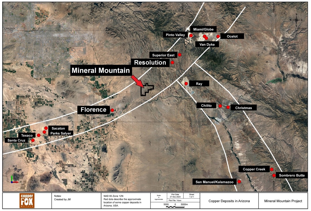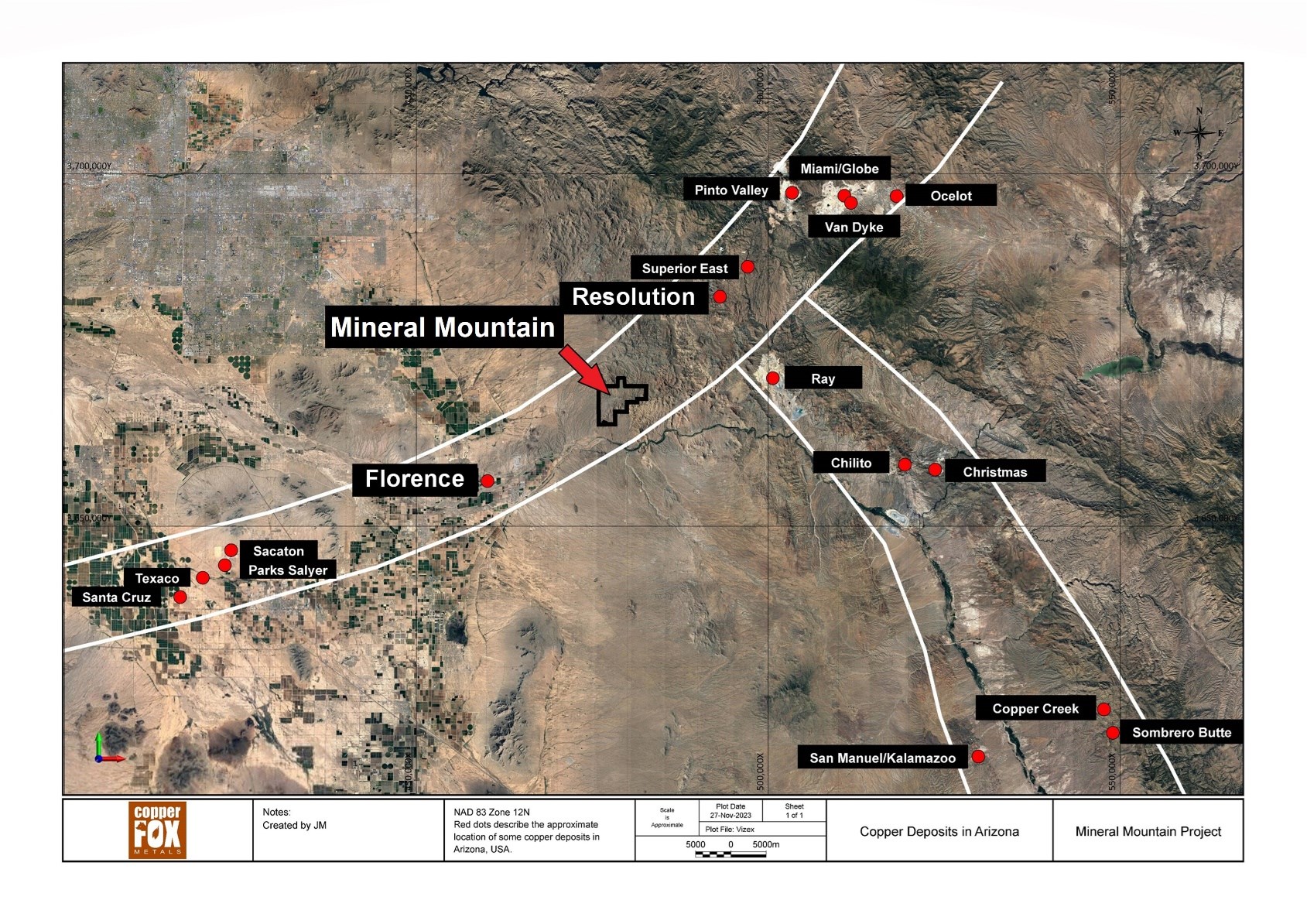 The Mineral Mountain project is located on a prolific northeast trending porphyry copper belt approximately 25km southwest of Rio Tinto and BHP's giant Resolution porphyry copper-molybdenum deposit and approximately 20km northeast of the recently commissioned Florence ISCR copper mine (Figure-1).